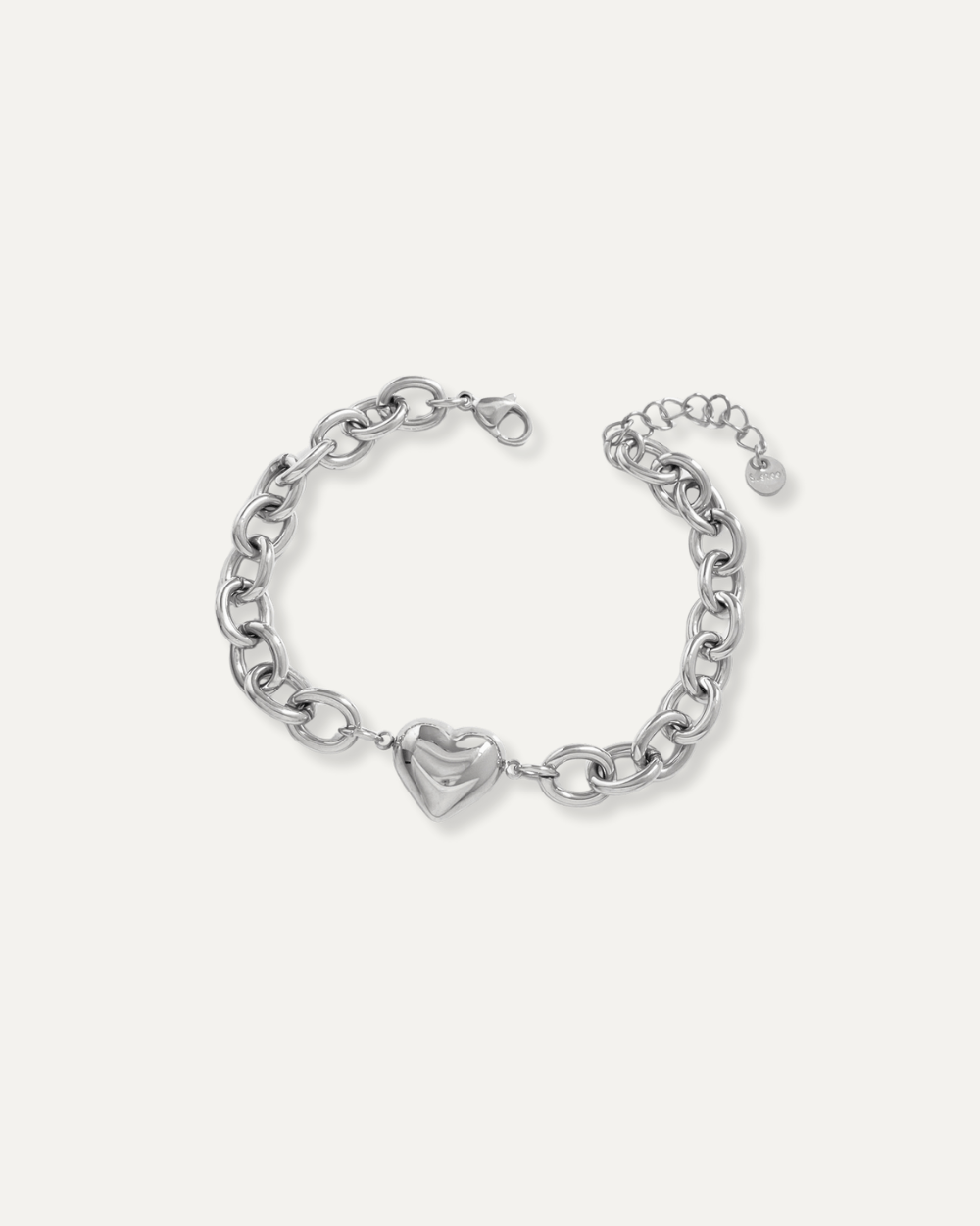 Bold and romantic. The Aera Bracelet makes a statement with its chunky chain and oversized heart charm ,a power piece with a soft side.