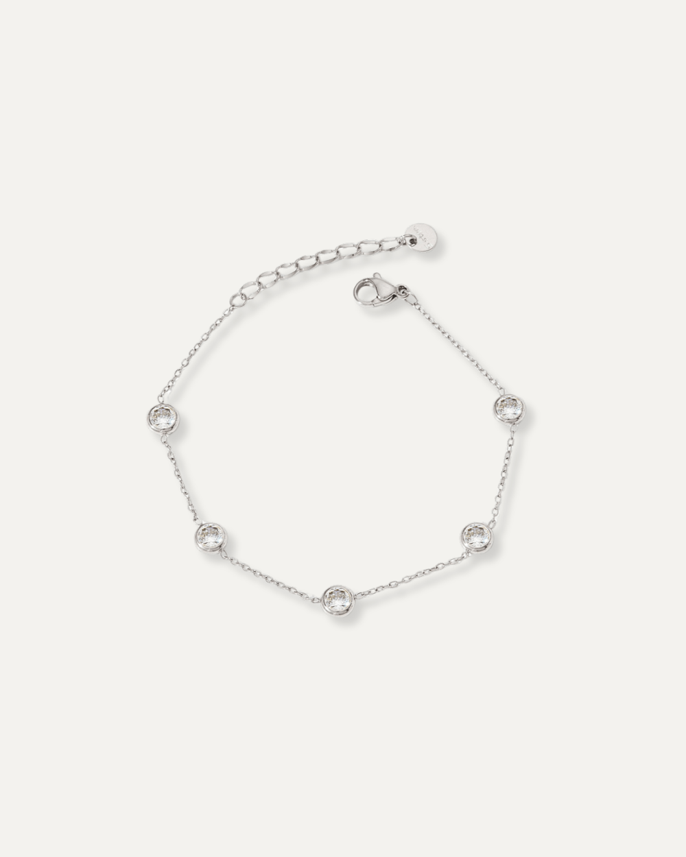 The Vienna Bracelet offers elegant simplicity ,five CZ stones delicately lined on a slim chain, making it the perfect finishing touch for day or night.