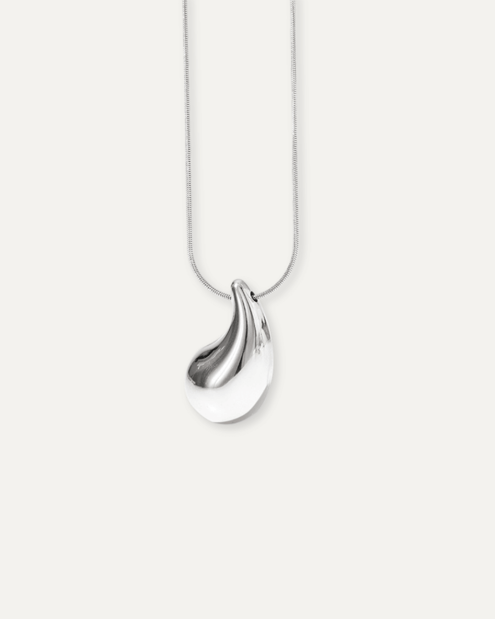 Inspired by nature’ s gentle forms, the Calia Necklace features a fluid droplet pendant on a delicate chain. Soft, simple, and soothing to the eye.
