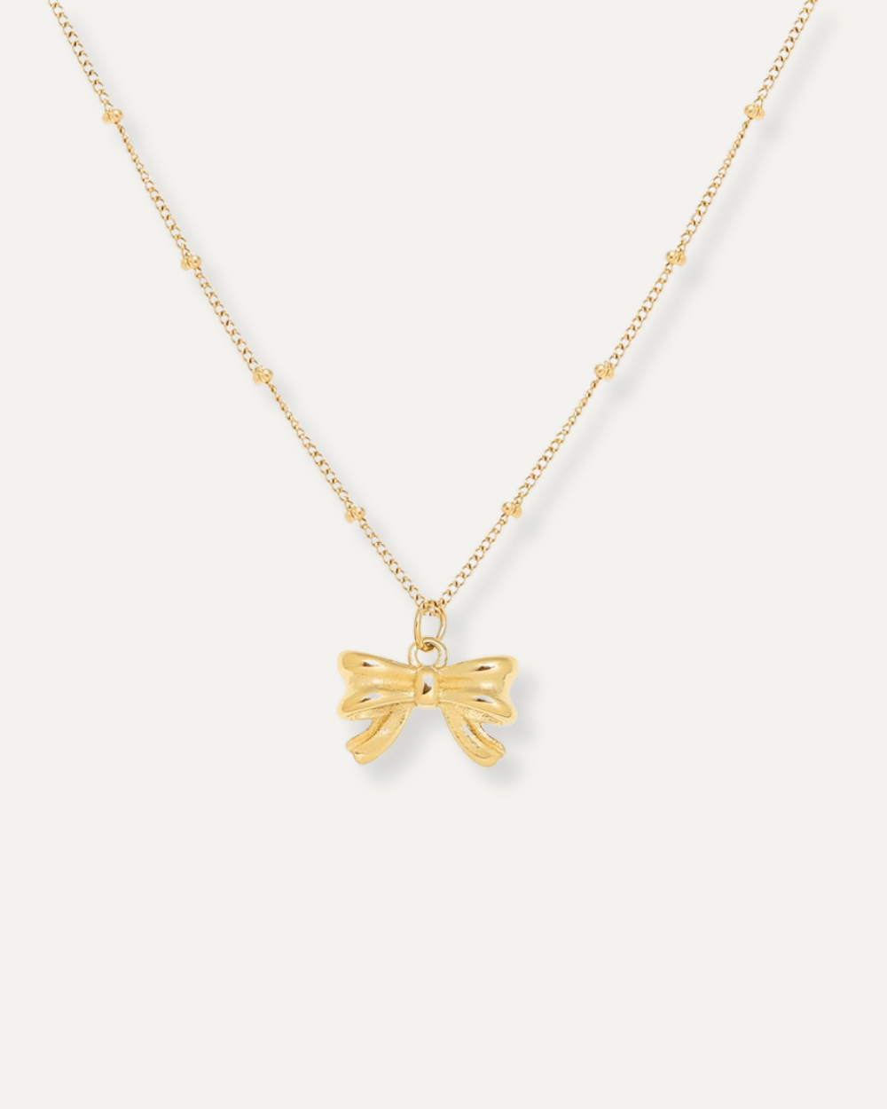 A bow you won’ t want to untie. The Caro Necklace brings a playful yet polished vibe with its ribbon-shaped charm. Feminine, graceful, and light-catching.