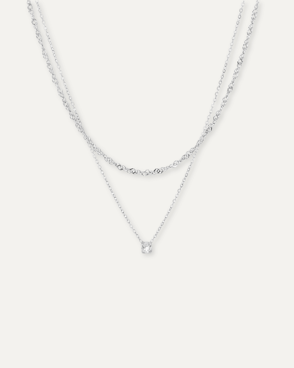 Two strands, one shimmer. The Elune Necklace blends minimalist layering with a touch of sparkle, thanks to its CZ centerpiece. Perfect for everyday luxe.